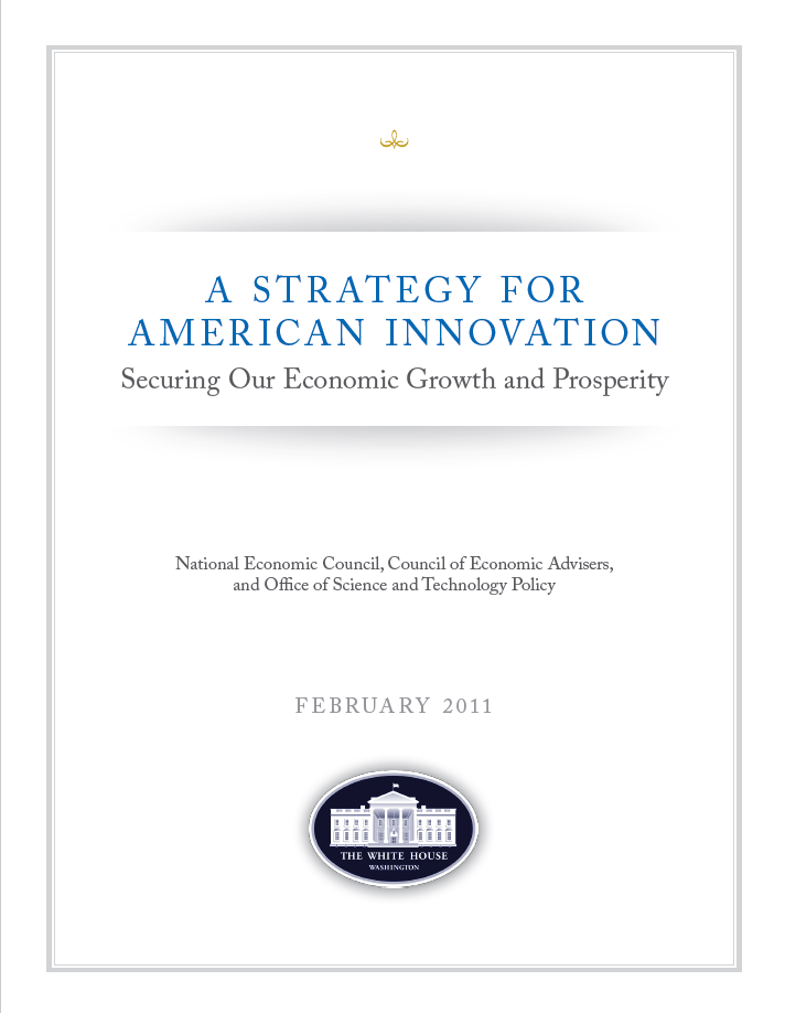 2009년 백악관에서 처음으로 [Innovation America Initiative]를 발표하며, 국가 개조(Reform the Nation) 관점에서 국가혁신전략을 성안하게 됩니다. 이것이 2011년 보다 입체적이고 정교하게 정리가 되어 발표 되었고, 2015년 10월에는 새로운 성장산업의 혁신을 어떻게 더욱 주도하고 또 가속화 할 것인지 등에 대한 내용이 업데이트되어 발표 되었습니다.