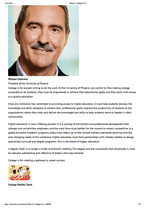Pew Research Center 라고 하는 미국의 저명한 사회연구기관에서 ‘대학교육의 목적’, ‘대학의 존재이유’에 대해 광범위한 인식조사(성인 2142명, 대학총장 1,055명, 조사방법 전화 인터뷰 및 서면 조사)를 한 결과를 2011년에 소개 한 바 있다.