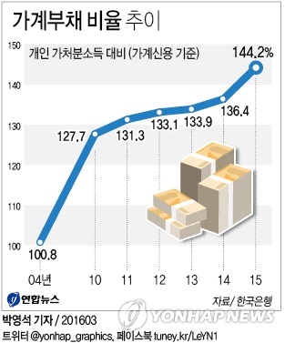 2015년 말 기준 가처분소득 대비 가계부채는 144%에 이르고 있고, 숫자 기준 기업의 한계기업 비중은 약 15%에 이른다. 기업부문의 리스크 익스포져 규모를 금액기준으로 산출해 보면 상당한 금액이 될 것이다.