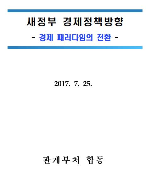 얼마전 정부에서 발표 한 “문재인 정부 경제정책 방향” 보고서 내용의 첫 머리에 나온 제목이다.
