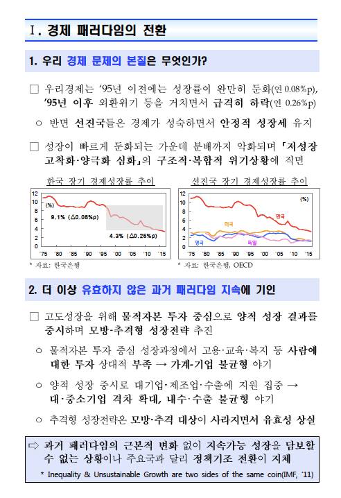 ‘저성장 고착화. 양극화 심화’를 우리 경제 문제의 ‘본질’로 설명하고 있는 듯 하다.