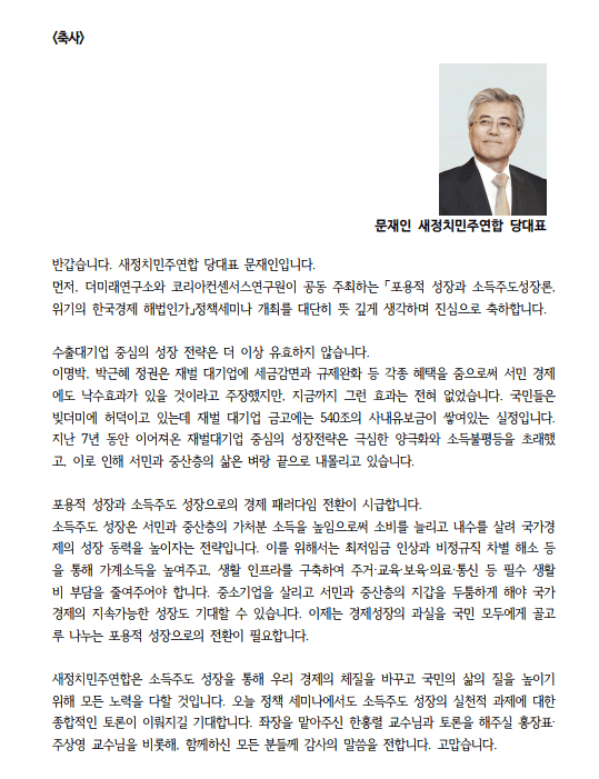 현 경제수석이신 홍장표 교수님의 관련 발제자료를 보게 되었습니다.