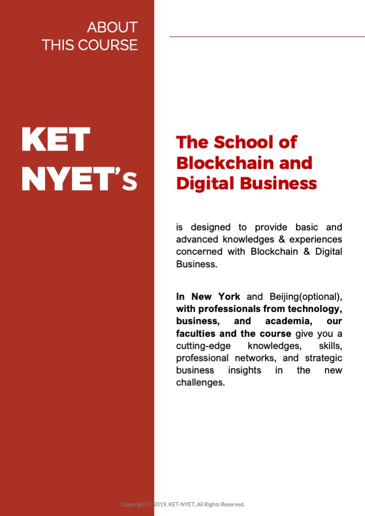 KET-NYET’s The School of Blockchain and Digital Business is designed to provide basic and advanced knowledges & experiences concerned with Blockchain and Digital Business.