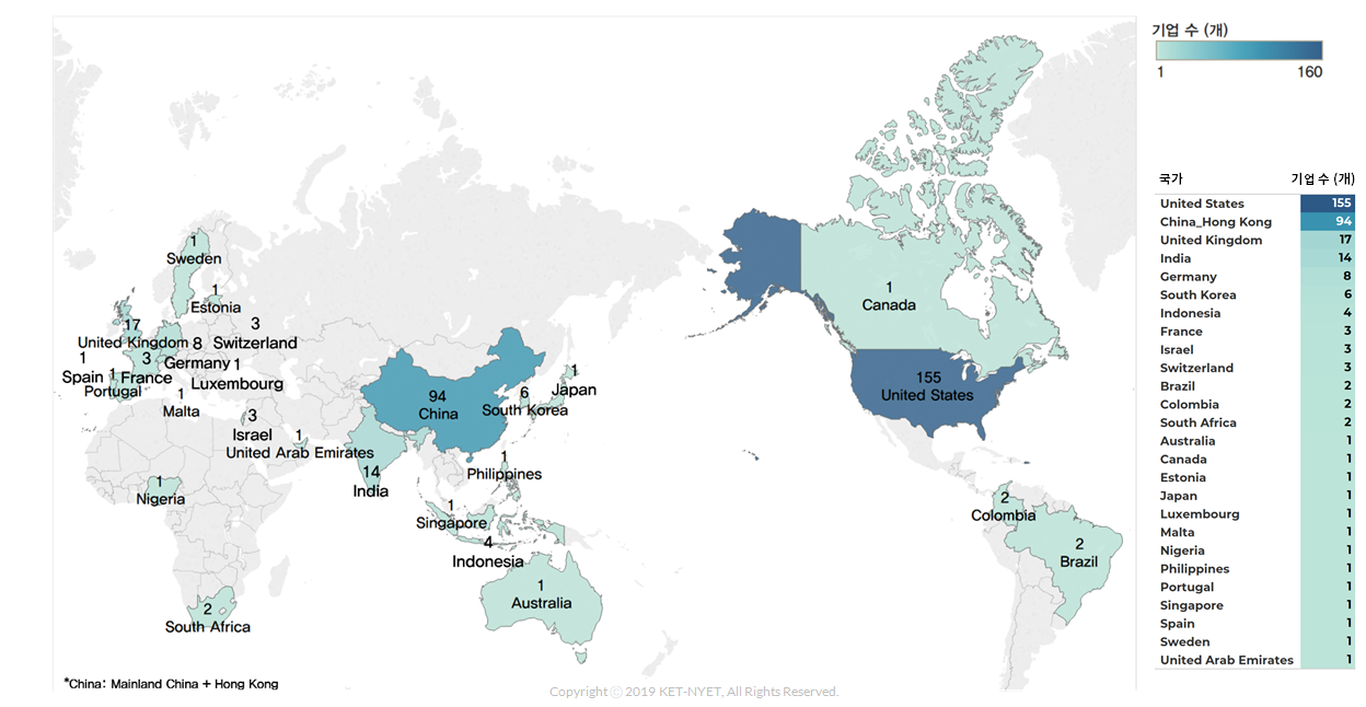 또한 주목해야 할 사항은 에스토니아 등 매우 작은 규모의 경제를 지닌 국가에서도 “유니콘 기업”이 배출 되었는데, 이들 역시 주된 시장은 유럽과 미국을 상대로 하는 경우 입니다.
