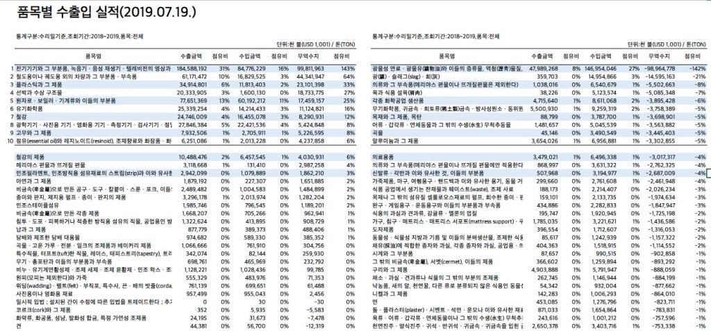 일본이 “수출 규제”를 들고 나올 때, 우리의 무역수지 구조를 꼼꼼히 살펴 보았다고 한다.