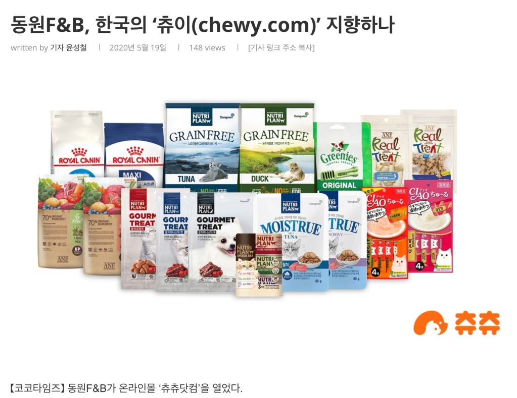 “Chewy, Inc.”, 국내에도 ‘반려동물의 아마존’으로 일정부분 소개가 되었다.