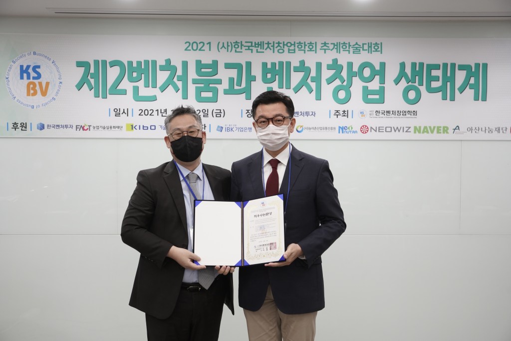 아울러, 1) 글로벌 유니콘 클럽 기업 연구, 3) 기업 성장 이론 연구는 2021년 한국벤처창업학회 춘계학술대회와 추계학술대회에서 최우수 논문상으로 선정되어 각각 수상하였습니다.