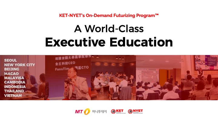 NYET의 ‘A World-Class Global Executive Education’은, 뉴욕, 베이징, 이스라엘 그리고 세계 전역의 주요 기업 및 교육 기관들과의 네트워크를 기반으로 제반 프로그램이 진행되며, 글로벌 시각에서의 차별화된 관점을 제공합니다. 또한, KET-NYET의 철학, 교육자, 교육학, 인프라 및 리더십을 통해 프로그램에 참가하시는 분들이 통찰력 있는 지식과 경험을 갖출수 있도록 하며, 실제의 세계(the real world)에서 문제해결을 구체적이고 실제적으로 행할 수 […]