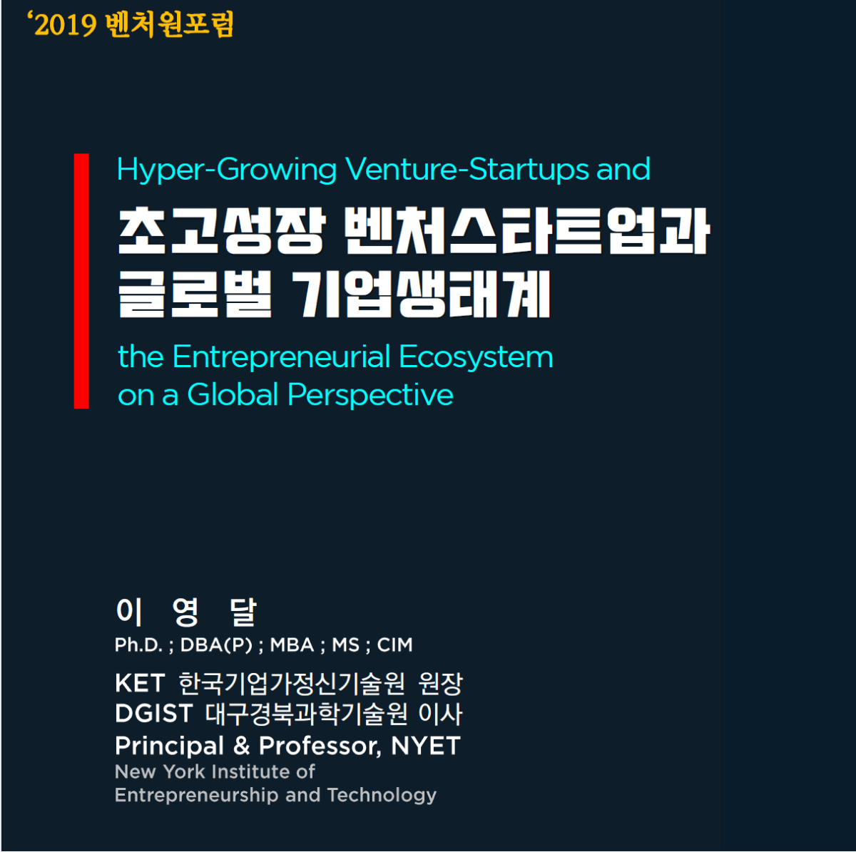 지난 7월 23일, KET 한국기업가정신기술원 이영달 원장님께서 벤처기업협회, 벤처스타트업위원회, KDB 산업은행이 기획한 <제 8회 벤처 ONE 포럼>의 발제자 및 패널 토론자로 참여하셨습니다. <벤처ONE포럼>은, 기업의 성장기회, 다양한 네트워크 구축, 수많은 경험에 대한 공유가 이루어지는 장으로서 성장 벤처기업과 스타트업기업 간 상호 이해와 협력의 기회를 제공하고, 현장의 목소리 수렴을 통해 법규제 개선 등의 소통의 창구를 마련하고자 개최되었습니다. 이번 […]